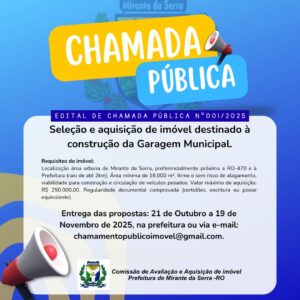 O Prefeito do Município de Mirante da Serra-RO, no uso das atribuições legais que lhes foram conferidas, em razão de aprovação no PROCESSO SELETIVO SIMPLIFICADO Nº 391/2025- SEMUG/RO, que tem por objetivo a contratação, porprazo determinadoparaatenderasSecretariasMunicipais de MirantedaSerra-RO,regida pelo Edital nº 009/2025, CONVOCA, os candidatos relacionados abaixo, para tomarem posse no prazo de 05 (cinco) dias úteis apartir da publicação deste Edital, sob pena de perda de vaga, para assinatura de Contrato de Trabalho, devendo se apresentar no Departamento de Recursos Humanos, da Prefeitura Municipal de Mirante da Serra.Convocaçãoficando cienteo candidatoconvocadoque, conformedefinidono Editala contrataçãoepelo periodo de 6 (seis) meses podendo ser prorrogado por igual ou menor período, a contar da data dacontratação. ASSISTENTESOCIAL40horas Nº Nome Classificação Totalde Pontos 1 KAROLINEFRANCIELLEBRITOSIQUEIRA 10º 80 OBS: Oscandidatosacima deverãocomparecermunidosdetodadocumentaçãoexigidosparaaocupaçãodo cargo conforme relação abaixo e dos documentos originais juntos fotocópias: DOCUMENTOS CópiadeCPF- Válido CópiaRG- Original CópiaRGeCPFdosDependentes(FilhoseEsposo)dequalqueridade CópiaCertidãodeNascimento,cartãodevacinaecopiade escolaridadedecursandomenores/dependente (Filhos) de qualquer idade CopiaCarteiraTipagemSanguínea Copiadeimpostoderendaoudeisento CopiadeCertidãodeNascimento/casamento–averbaçãodedivorcio Se,dosexomasculino,comprovantedeestarquitecomasobrigaçõesmilitares; CópiadePIS/PASEPoudeclaraçãodequenãopossuicadastro. CópiadoTítuloEleitoral,comprovadesituaçãoregular(quitaçãoeleitoral); CarteiradeTrabalhoePrevidênciaSocial–CTPS(originaleCópia). Umafotografia3x4recenteecolorida; SepossuirContaCorrentedePessoaFísicanoBancodoBrasil,apresentarcópiadocomprovante; ComprovantedeResidência;Atualizado Comprovantedeescolaridade(diplomaoucomprovantedeconclusãodecurso) CópiadaCNH(CarteiraNacionaldeHabilitação),seocargoexigiroucasopossua; CópiadaInscriçãoprofissionalouconselhodeclasse,casotenhaecompatívelcom ocargopretendido(carteira profissional). “Registro no Conselho de Classe ativo e regular” “Habilitação legal para o exercício da profissão.” CertidãoNegativadeDébitosdeTributos Municipais; CertidãoNegativaexpedidapeloTribunaldeContasdoEstadodeRondônia–TCE; CertidãodequitaçãocomafazendapúblicaEstadual; Certidãodequitaçãocomafazendapúblicafederal; Declaraçãodequenãofoidemitidoabem doserviçopúbliconosúltimos5(cinco)anos.(declaradopelo próprio candidato); DeclaraçãoquenãorespondeaProcessoAdministrativoDisciplinar,nasesferaspúblicasMunicipal,Estaduale Federal(declaradopeloprópriocandidato); AtestadodeSanidadeFísicaeMental,acompanhadodosseguintesexameslaboratoriaisedeimagem: hemogramacompleto;glicemiajejum,TGO,TGP,bilirrubinastotaisefrações,ureiaecreatina,colesterol totais e frações, triglicerídeos; raio X de torax; coluna total; ECG simples. O referido atestado deverá ser emitido por médicos do quadro Municipal; DeclaraçãodequenãofazpartedogrupoderiscoàCovid-19,ecomprovantedevacinaçãodaCovid-19; Teridademínimade18(dezoito)anos DeclaraçãodeBens CertidãoNegativaCivileCriminalde1ºe2ºInstancia,dacomarcaderesidência doCandidato Declaração informando se ocupa ou não cargo público, expedida pelo próprio candidato, conforme a XVI, da constituição federal (com reconhecimento em cartório da assinatura), sendo que caso já ocupe cargo, devera apresentarcertidãoexpedidapeloórgãoempregador,informandoacargahorariacontratual,odetrabalhoeo regimejurídico; MirantedaSerra/ RO,29deOutubro de2025. JOSÉCARLOSPEREIRADEANDRADE PREFEITO (AssinadoEletronicamente)